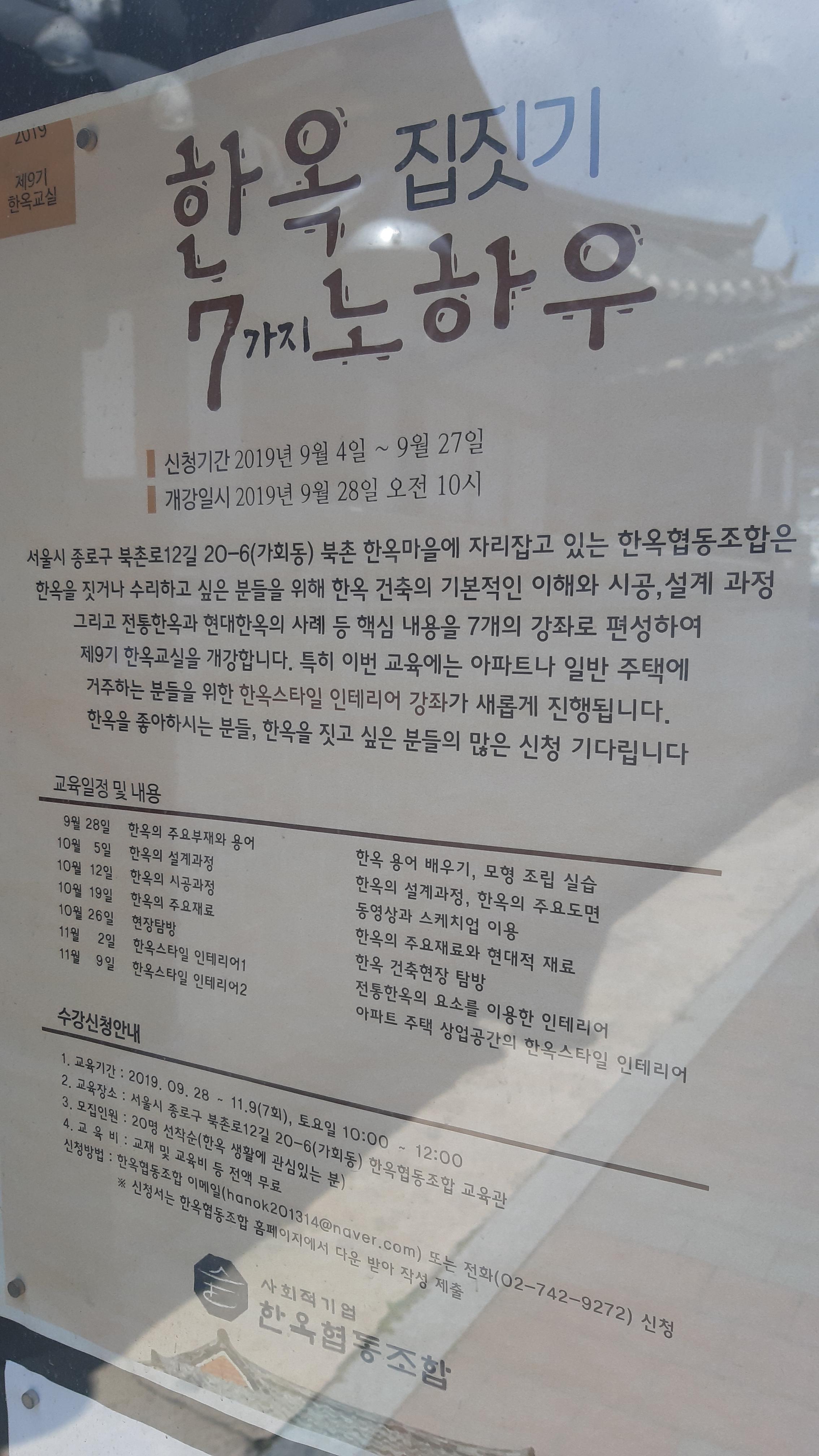 올해도 할지는 모르겠지만 토요일에 시간 되는 사람은 한옥집짓기 7가지 노하우를 알려주는 무료 교육을 참여해도 좋을듯.