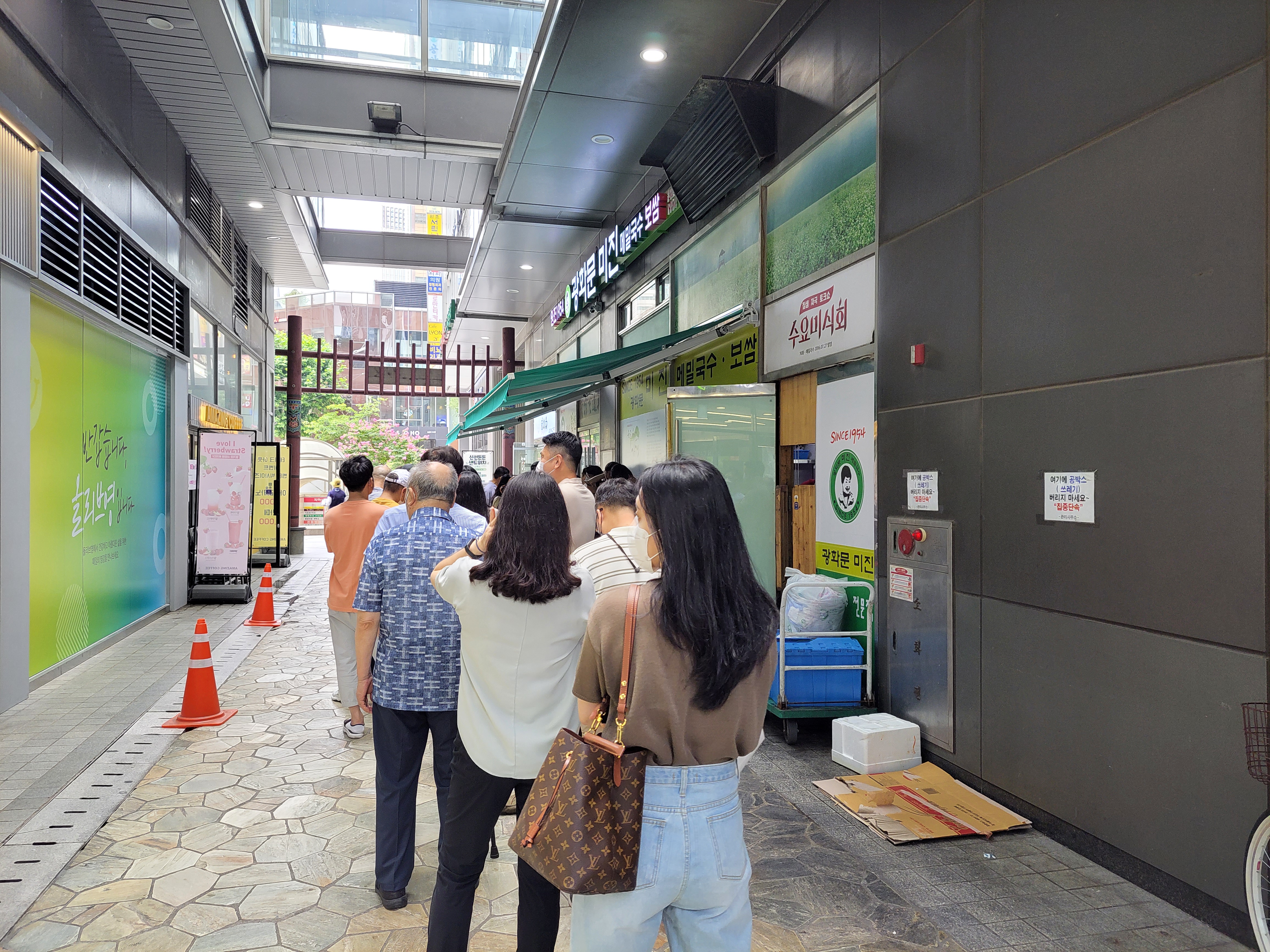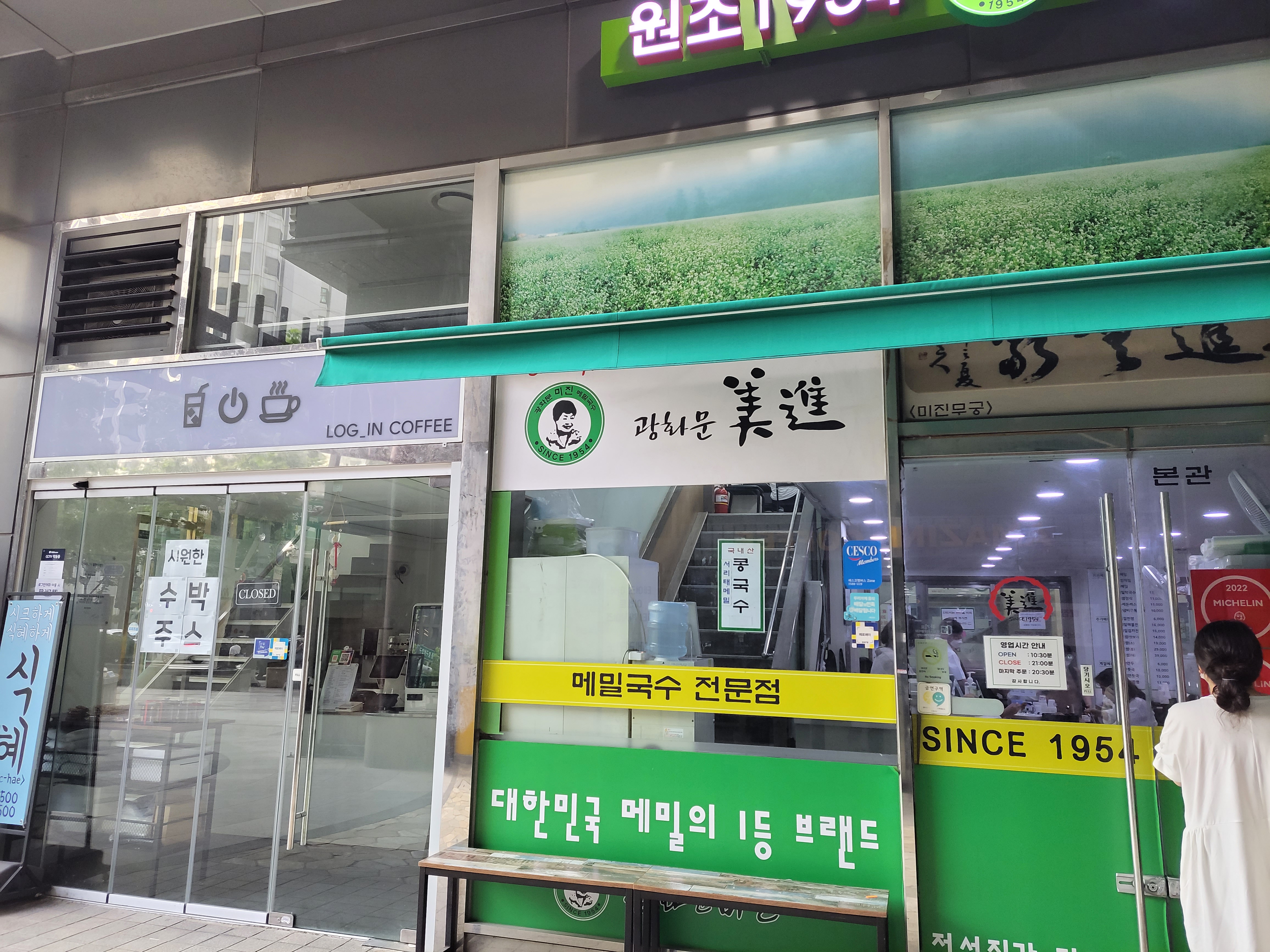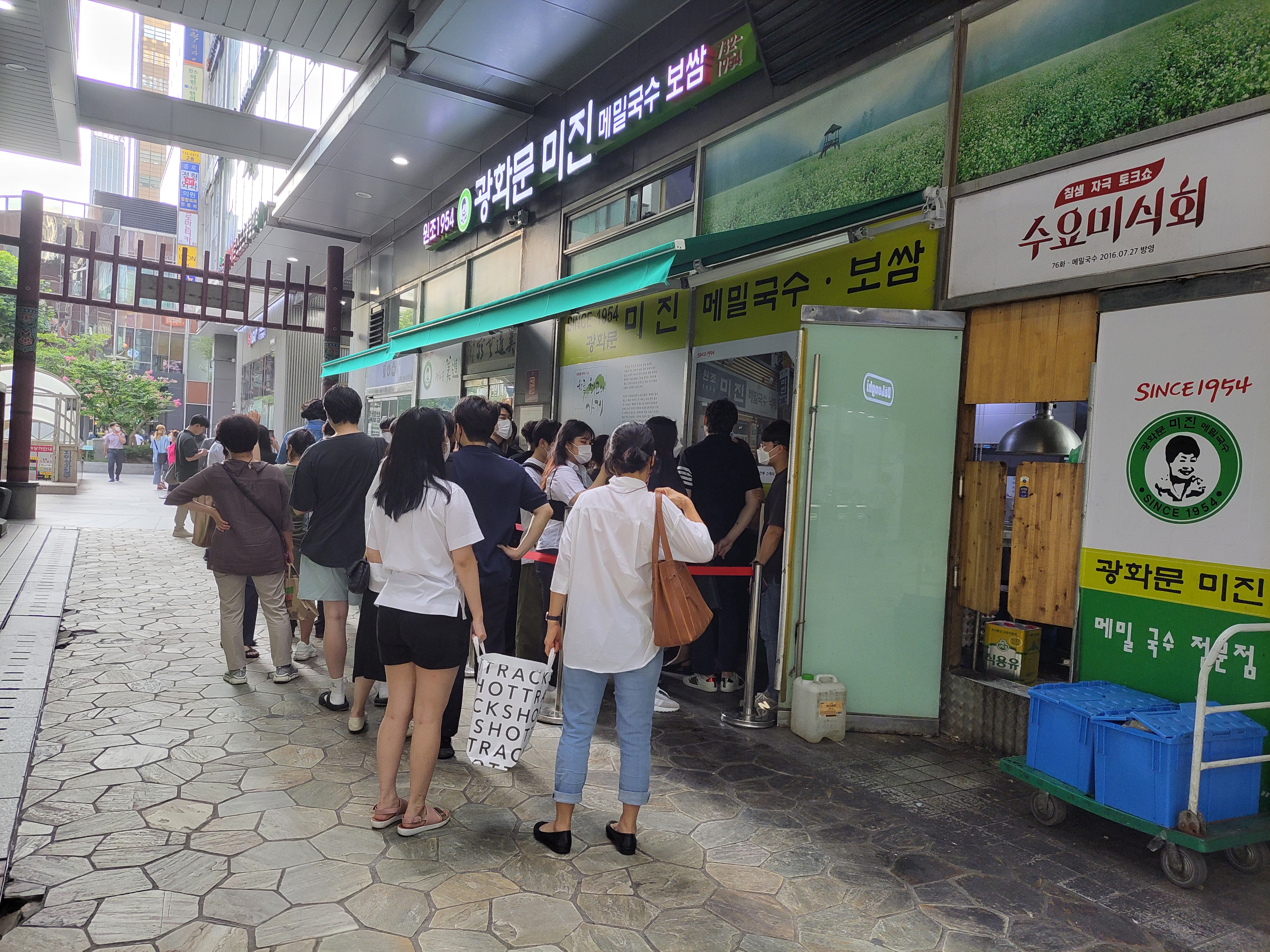 사람이 무지 많이 길게 늘어선 광화문 미진 메밀국수 보쌈집이다.