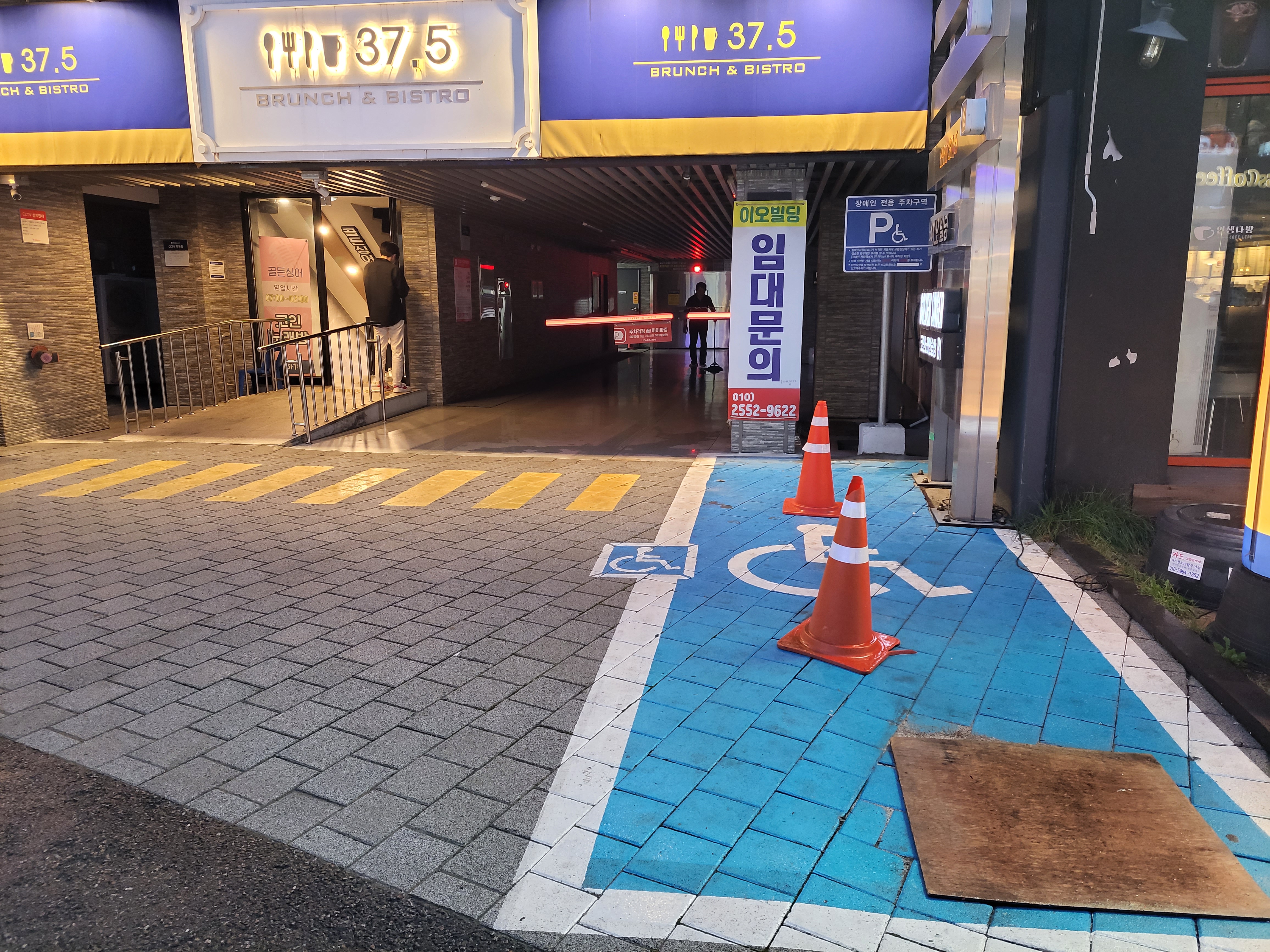 주차는 1시간 무료다. 안으로들어가서 기계식 주차를 해야 한다. 관리인이 도와준다.