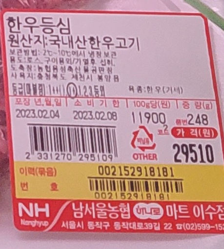 | 남성사계시장 한우 등심 추천 - 부경양돈농협 축산물정육백화점 100g 당 6790원 (0) | 2023.03.26 |