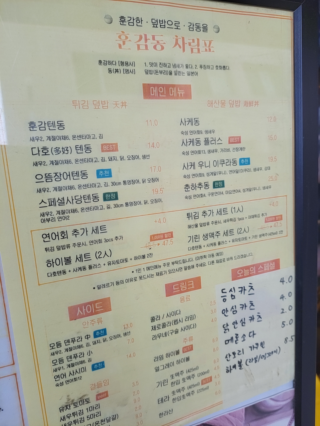 사당동에 일식덮밥 텐동 사케동 등을 파는 훈감동이 있다.