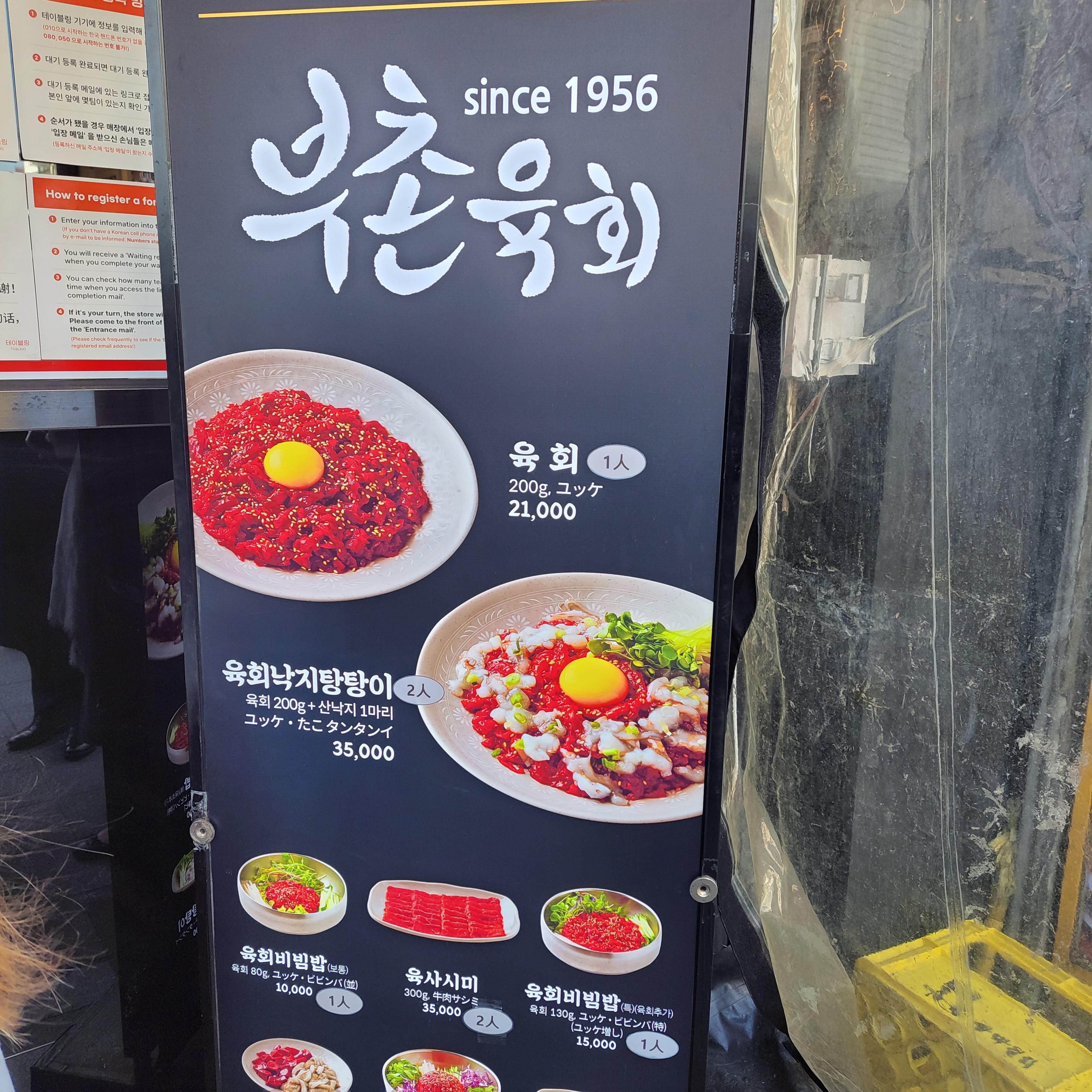 육회집도 여러군데가 있으나 부촌육회에 줄이 서 있다.